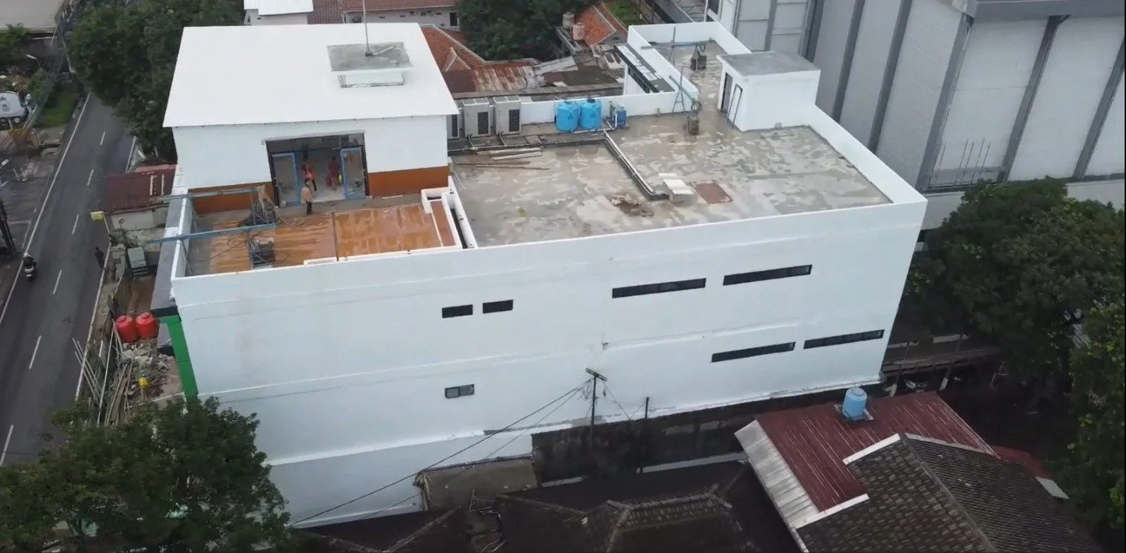 Pelapisan cat dinding pada luar gedung kantor PPKD Jakarta Selatan. Menggunakan Deco Plus 739 - Premium Exterior dari Garda Bumi Raya