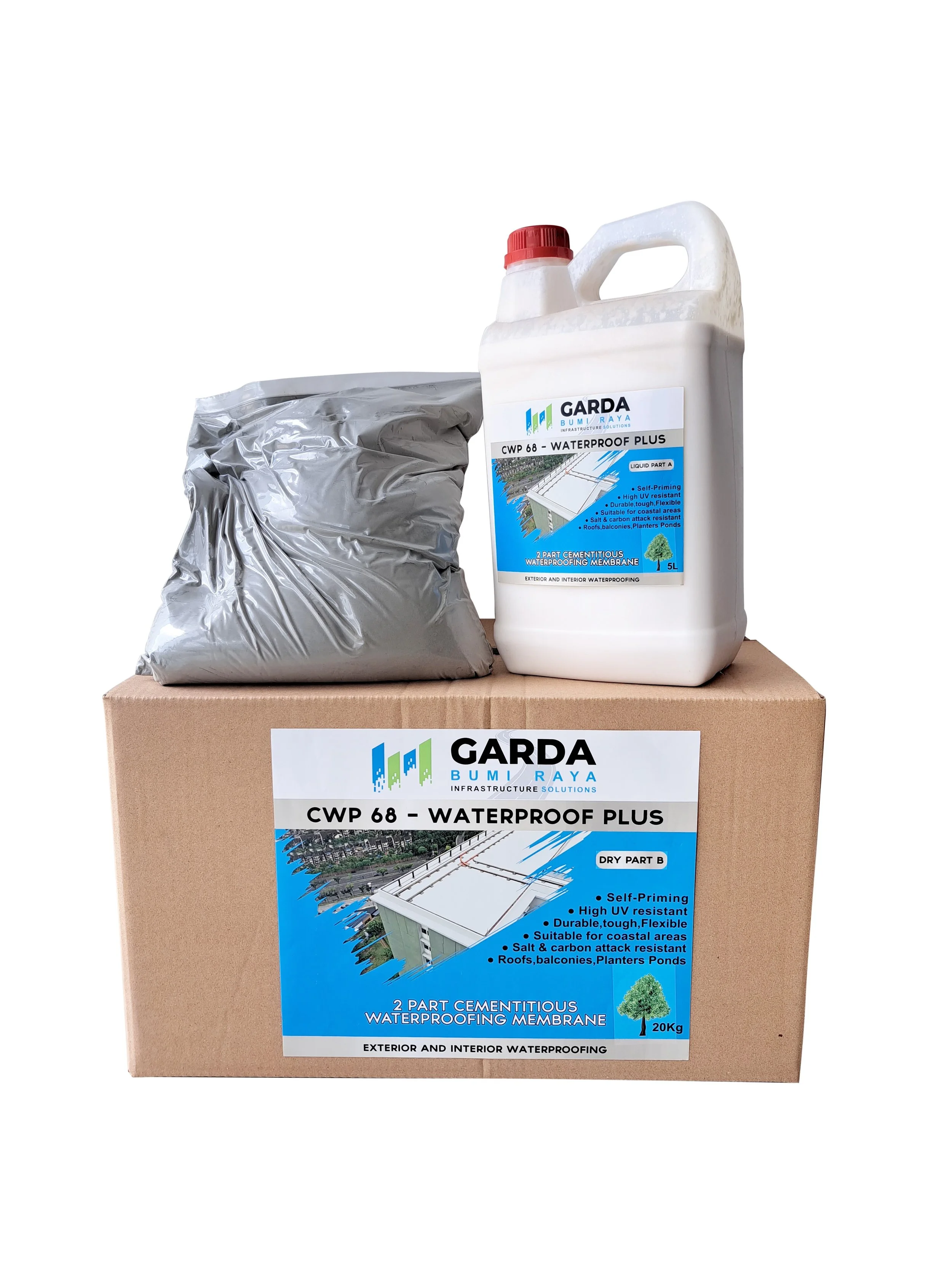 Garda CWP 68 Waterproof Plus is a two-part polymer modified cement-based waterproofing membrane formulated to withstand the intense heat, sun exposure and heavy rainfall experienced in Indonesia and provide effective, long lasting water protection.