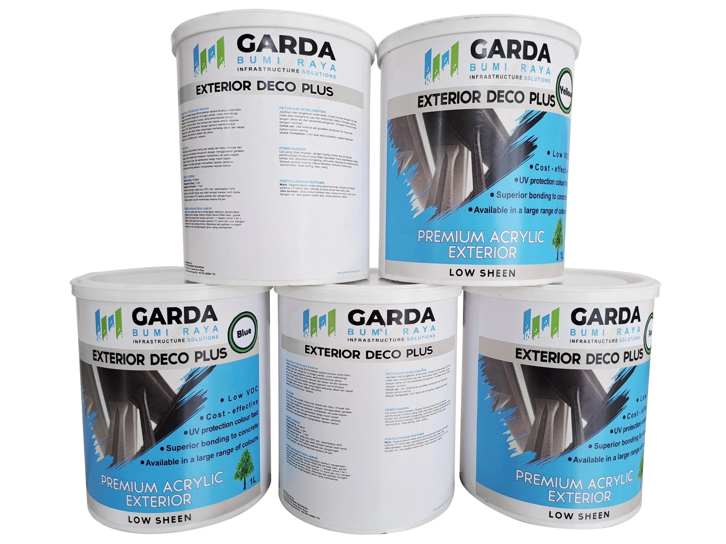 Garda Exterior Deco Plus is a premium acrylic exterior paint designed to endure harsh weather conditions, boasting exceptional resistance to water, alkaline, mould, dirt, and stains.